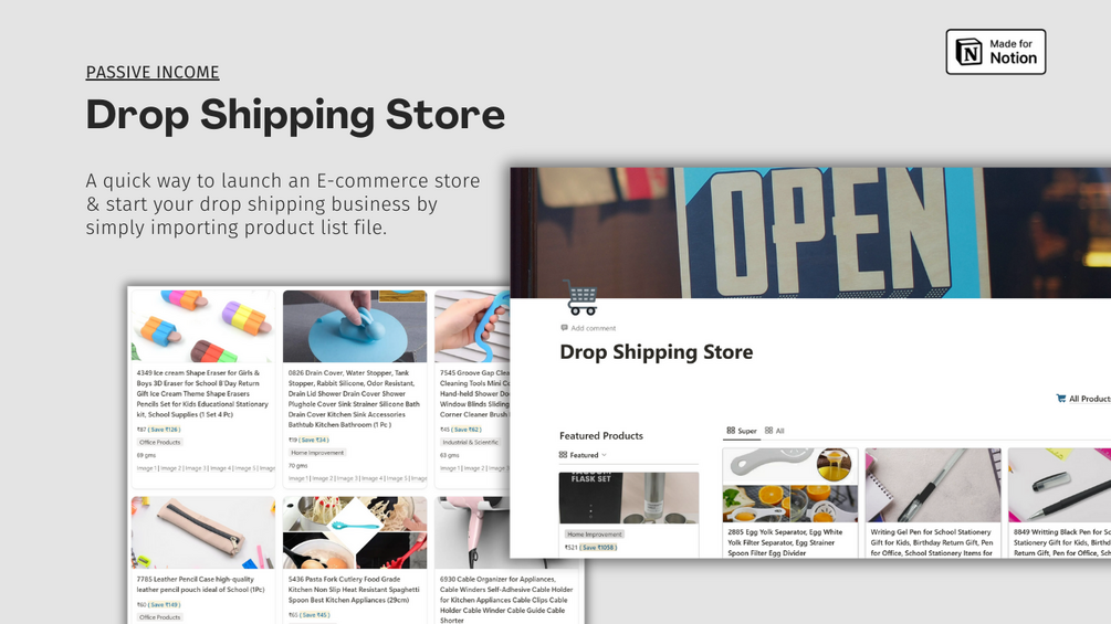 This Notion Template is designed for individuals and businesses involved in drop shipping. It offers a seamless way to list your products, similar to what you would find on ecommerce websites. With this template, managing your drop shipping business becomes more organized and efficient.
