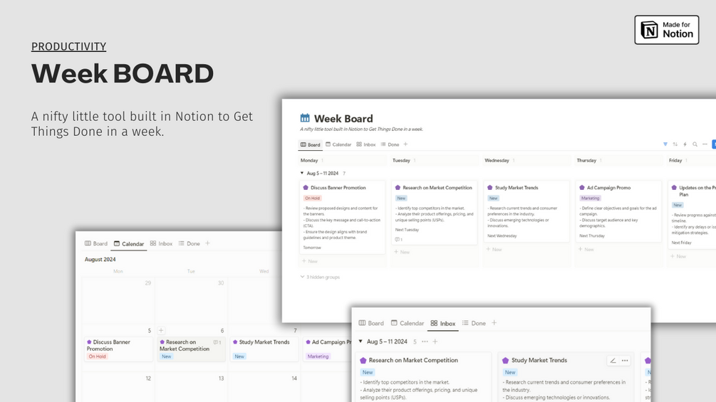 Quickly start off with capturing your thoughts on to a Board and see things getting done in a week with this minimalistic approach to transform your thoughts in to actionable and getting them done.